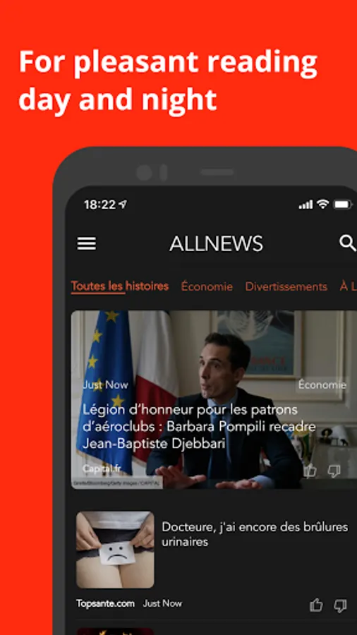 Always free of charge, no need for an account, no advertising, and specially designed for mobile, ALL NEWS offers clear and customised reading of current events, 24 hours a day.