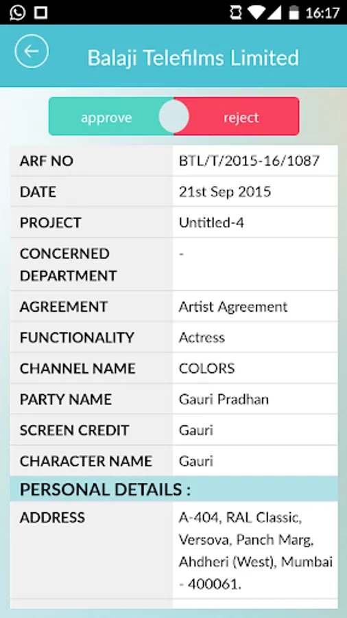 This app would facilitate the management to action the Agreement Requisition Form (ARF) and Payment Requisition Form (PRF) from anywhere across the globe. It would notify the signatory when the approval request is received. The ARF / PRF can be viewed on the screen and can be approved or rejected by the signatories. The app would keep track of the ARF / PRF which has been Approved, Pending for Approval and Rejected.