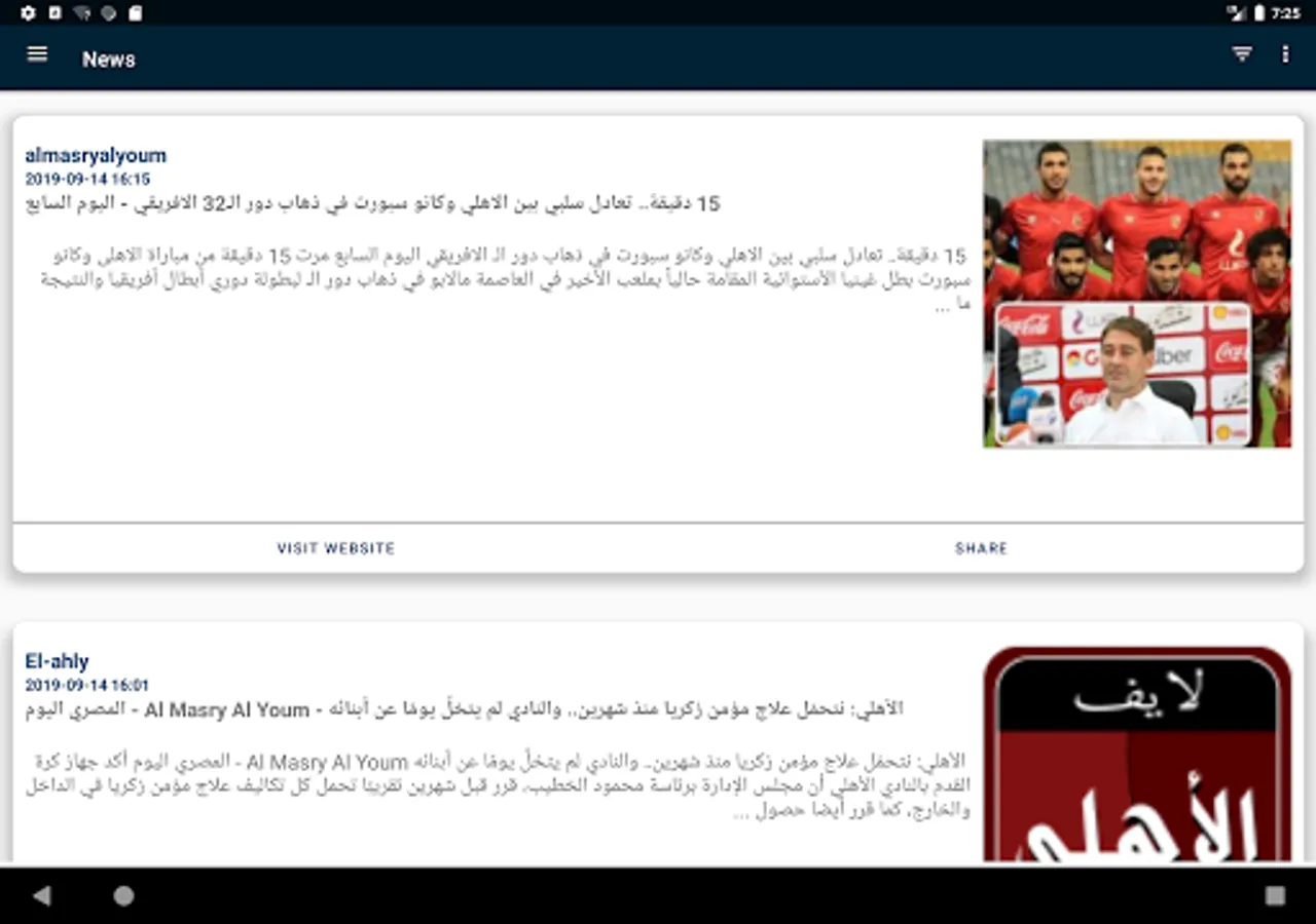 The app gets you latest Ahly club news and match results.