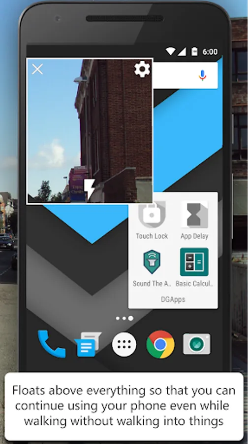 WalkCam by DGApps is a productive way to continue walking safely while using your phone. DGApps has created an adjustable floating window that shows where you are going on a resizable floating camera window that shows you the road in real time.