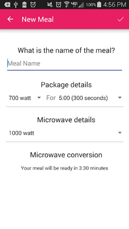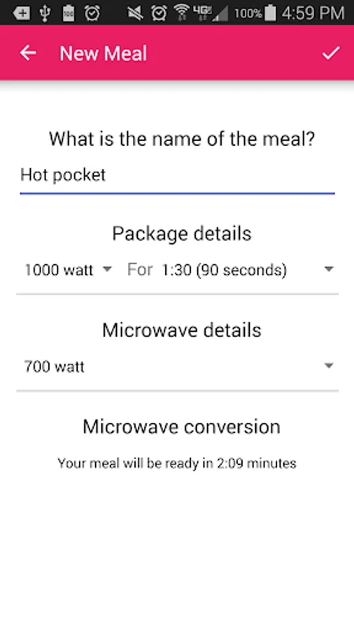 Practically every microwave meal lists on the packaging the steps required to properly prepare a meal; specifically, how long it needs to heat up at a certain power. But what do you do when your microwave doesn't meet the wattage requirements listed on the package? Well, that's the problem that this app will solve. All the user needs to do is enter the time and wattage level from the packaging, and the power of your microwave and the app will calculate your cooking time which you can also save.