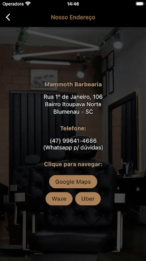 - Access our address and use navigation shortcuts for Maps, Waze or call Uber to come to us;