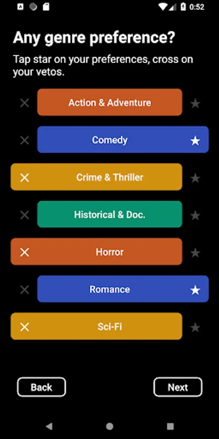 PickaFilm makes things a lot easier by letting you veto the genres you don't want to watch, prioritize the ones you prefer and add lots of practical filters like release year intervals, members of the crew, tags and much more. You can also watch the trailers and details of the suggested movies within the app, so that you don't need to be going back and forth between apps to make a decision.