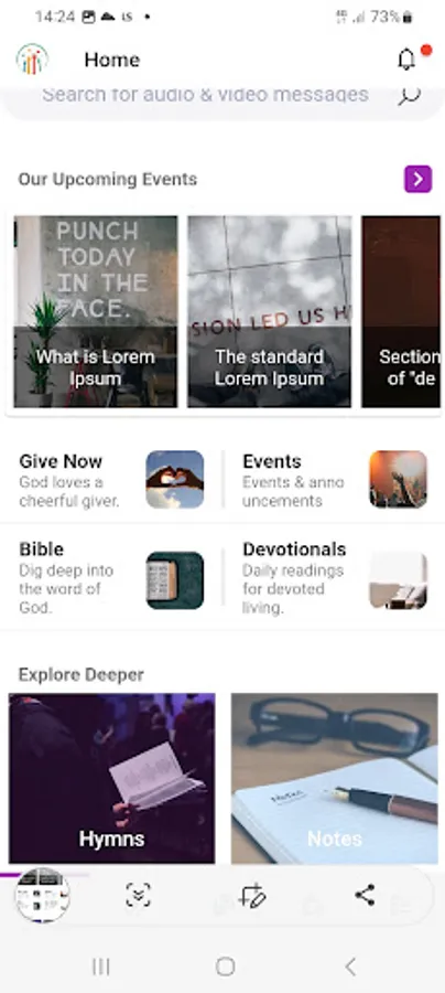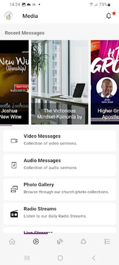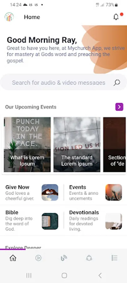 Comes with a clean, functional and powerful video/Audio player for members to watch or listen to church sermons right on their devices.