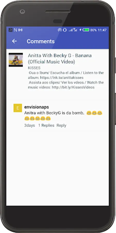 Users can react or give feedback through comments/replies and likes. App comes with support for emojis in comments.