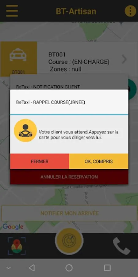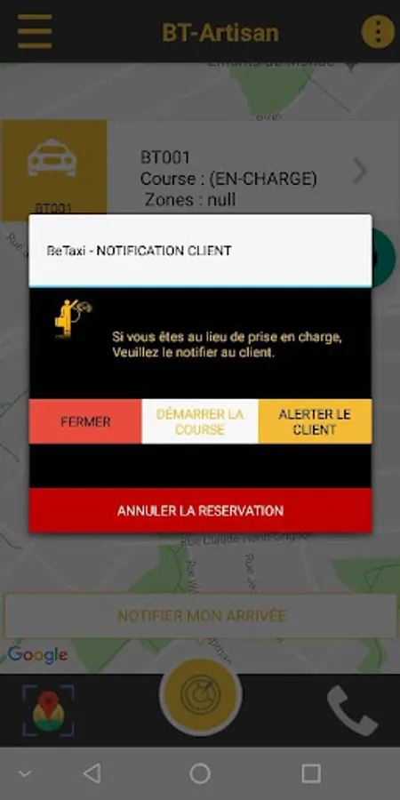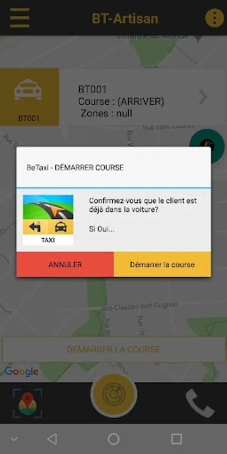 • Starting navigation with GOOGLE MAPS to go to the customer or to take the customer to his destination
