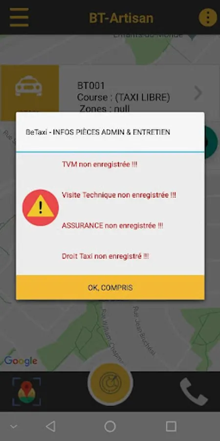 • Record the administrative documents (gray card, technical visit, TVM, Taxi Law) of the taxi by simply taking a photo.
