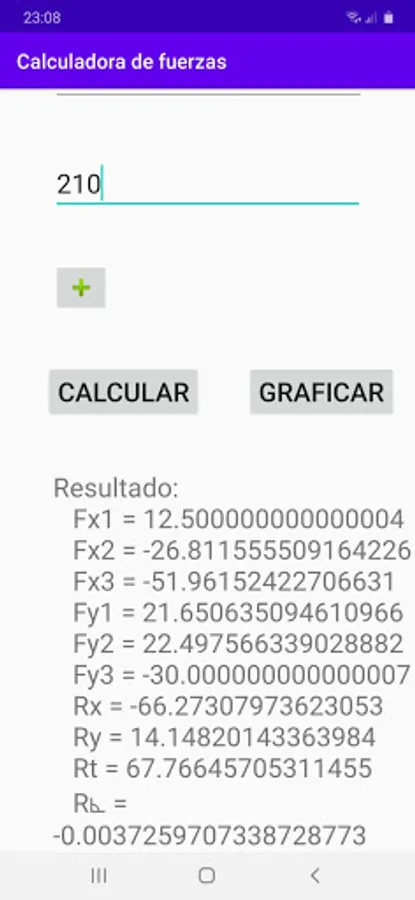 X-force, Y-force, total force (or the resultant) and the total angle.