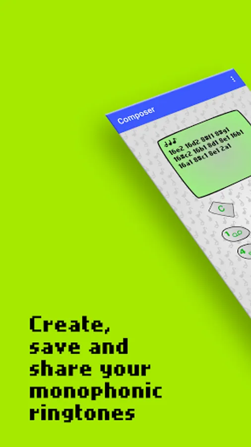 Are you nostalgic about the good old times of monophonic ringtones, and do you still remember the oh-so-many hours spent on the Nokia Composer trying to make your ringtone sound just right? With Composer you can relive the experience, and create your own monophonic ringtone just like you have a good old trustworthy Nokia 3310 in your hands!