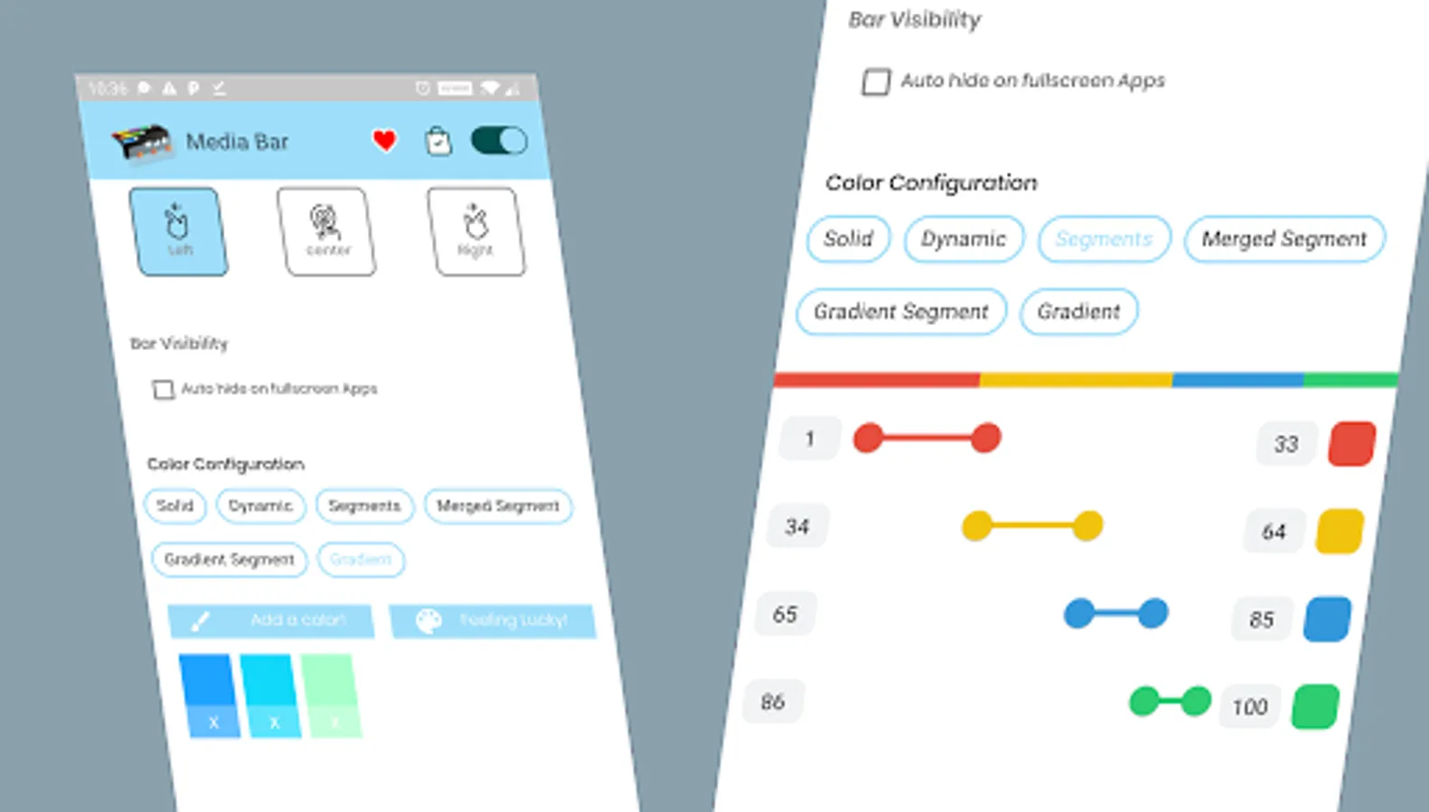 ✓ Gradient Segment - Whole of Media Bar will gracefully change its color as it progresses from one segment of the media playing to another.