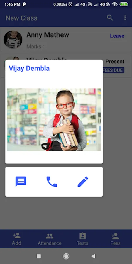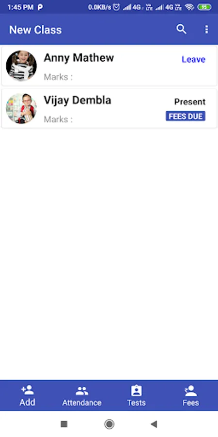 Teachers App is a fees management, test marks management and attendance app. It enables a private tutor or any coaching class or school to maintain a list of students enrolled, track their fees payment and attendance. The app allows Fees Receipts to be sent via SMS. This app stores all data locally on the mobile device and does not need any internet connectivity to function. A very easy to use Backup and Restore function (csv file) allows data to be saved from the app and transferred to another device thus ensuring continuity without any loss of data when you change your phone.