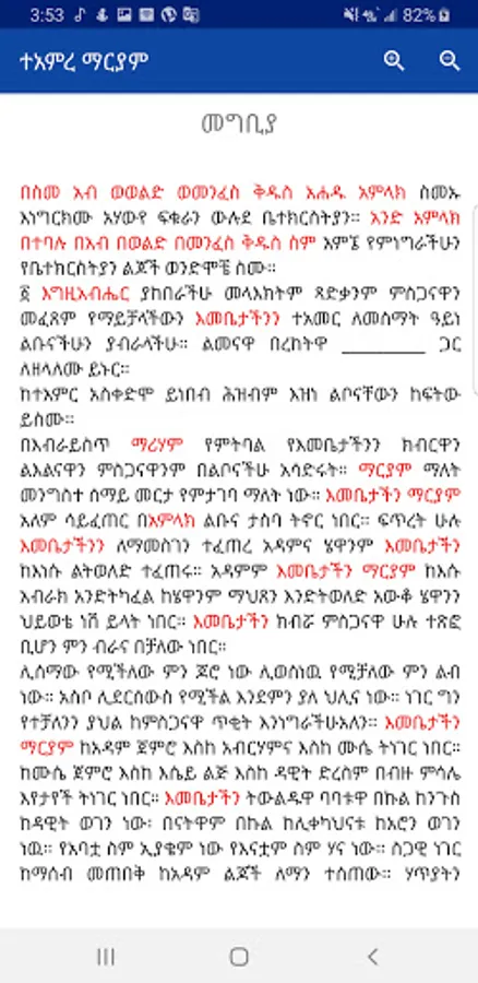እግዚአብሔር ያከበራችሁ መላእክትም ጻድቃንም ምስጋናዋን መፈጸም የማይቻላቸው እመቤታችንን ተአመር ለመስማት አይነ ልቡናችሁን ያብራ ላችሁ። ልመናዋ በረከትዋ ከሀብተውልድ ጋር ለዘላለሙ ይኑር። ከተአምር አስቀድሞ ይነበብ ሕዝብም እዝነ ልቦናቸውን ከፍትው ይስሙ። በእብራይስጥ ማሪሃም የምትባል የመቤታችንን ክብርዋን ልእልናዋን ምስጋናዋንም በልቦናችሁ አሳድሩት። ማርያም ማለት መንግስተ ሰማይ መርታ የምታገባ ማለት ነው።