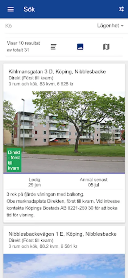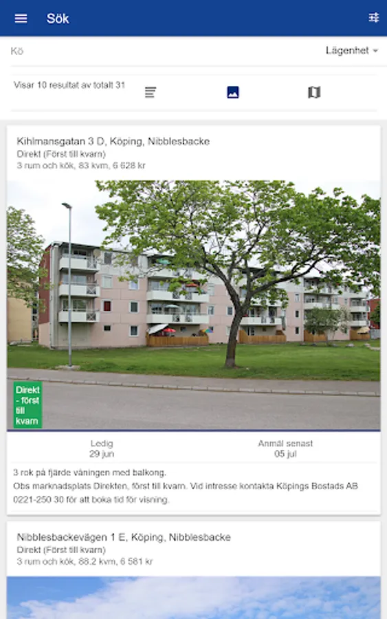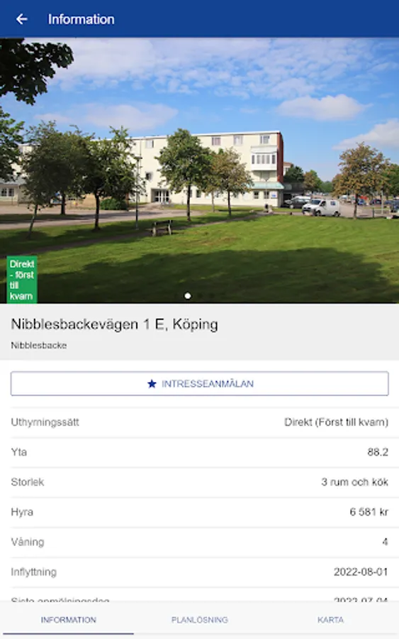 With KBAB's bostadsapp you can search for available apartments and parking spaces.