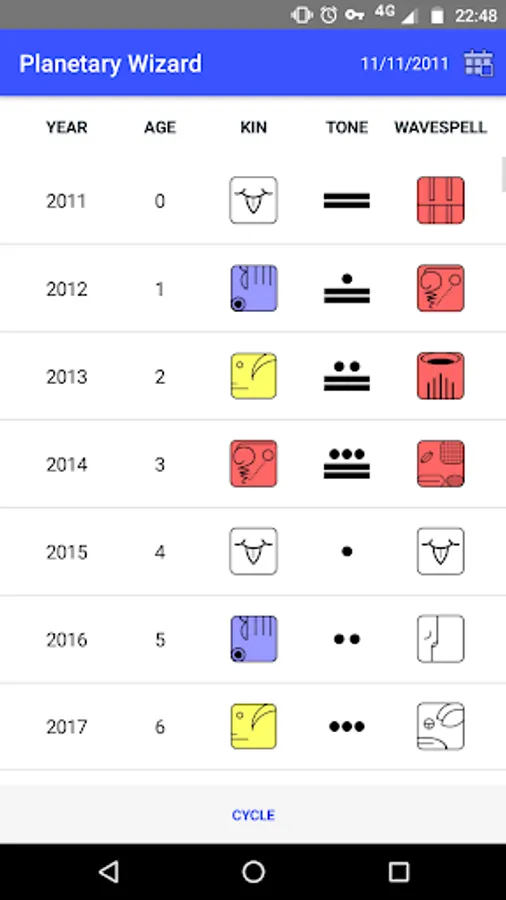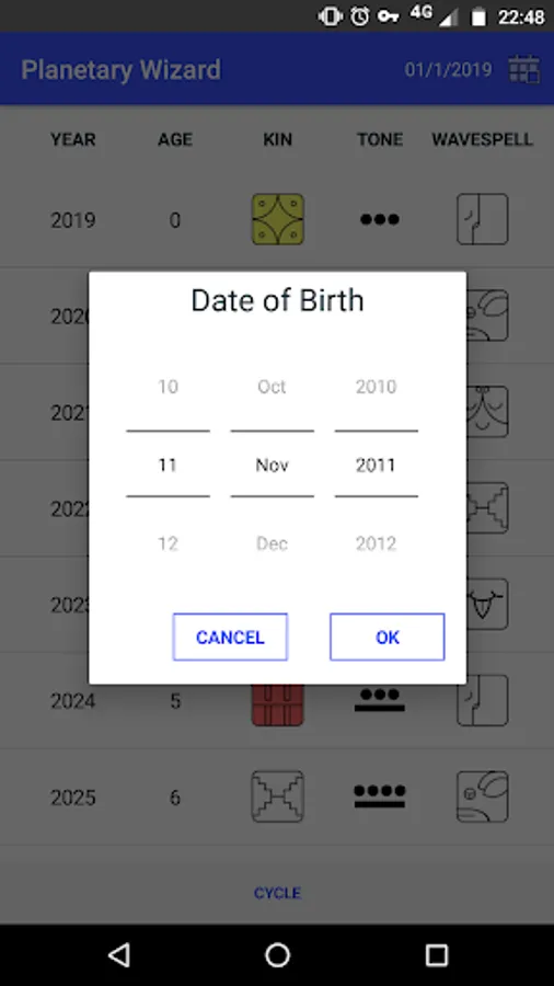 On this application you will get to know your Mayan Cycle and Psicrono based on your birth date.