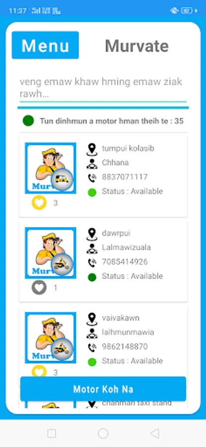 Kan App kal tlang hian i bul hnai a motor ding rem chang leh driver koh maitheih te, awlsam takin a zawn hmuh zung zung theih a, ilo hman ṭangkai ve ngei dawn nia.