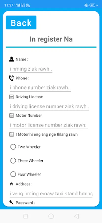 Tin driver inih a customer tam leh zual i duh anih chua ilo in register ve ngei dawn nia.