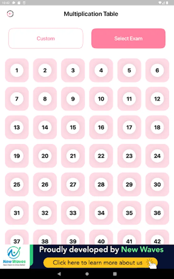 NewWaves Maths Tables Learning App is a Maths timetable learning app for all ages, along with audio support. It's easy to use, and no parental support is required. The App will display all tables, and the App will speak all the multiples one by one, which makes learning easy.