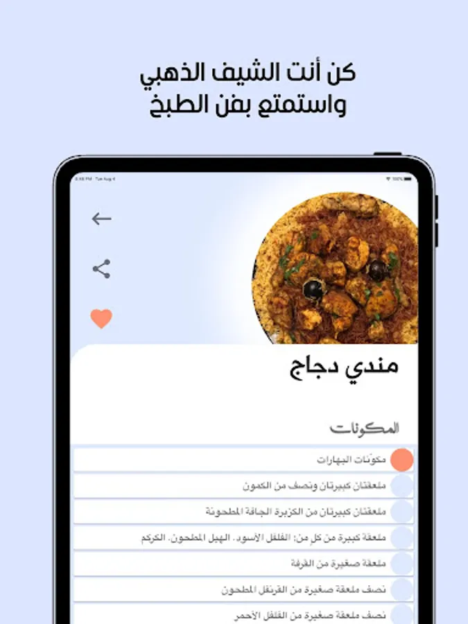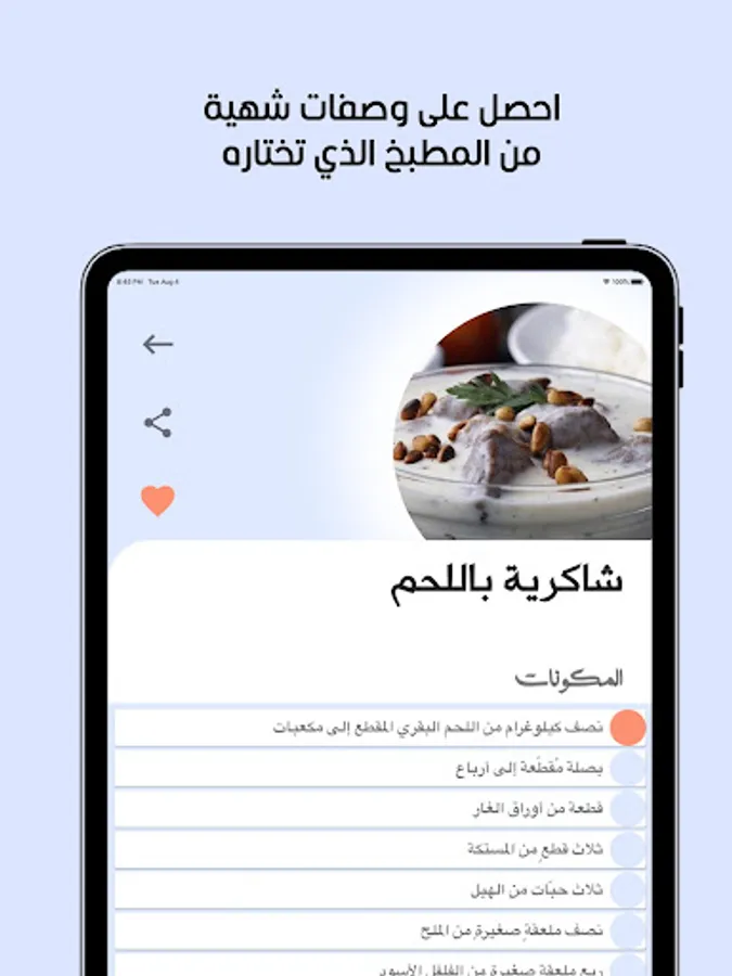 The delicious tabkh application offers a list of distinct Arab and international cooking recipes