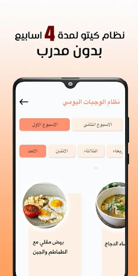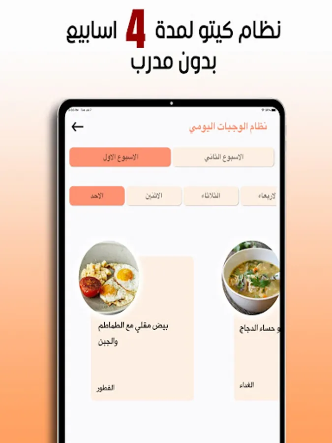 This app is for Keto Diet recipes with a 4-week diet in Arabic.