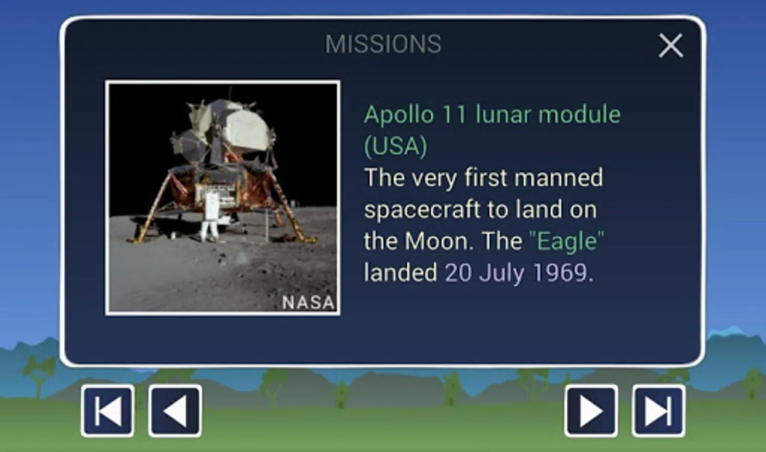 LUNA provides a close approximation to the correct lunar phase and position at any given time and place on Earth. It estimates what the Moon will look like. It is not meant to be a precise lunar phase calendar (you will find many other apps for that functionality). LUNA is much more. It will help you to develop and increase your understanding of lunar phases, of why the moon can appear “upside down” in another part of the world, or tilted another way at different times of day or night. LUNA also lets you discover a number of interesting facts about the Moon and about past and future missions to the Moon. If you are interested in astronomy and want to try a fascinating app which may give you more insight into the Moon, try LUNA. Experiment, observe and learn!