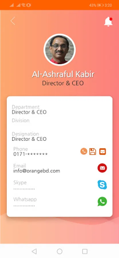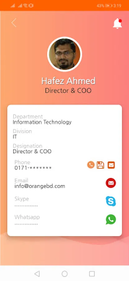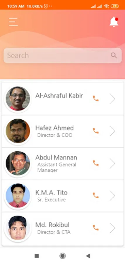 This is a initial version of OrangeBD eDirectory Android App. The employees of orangebd can now find communication details here and can communicate with each other.
