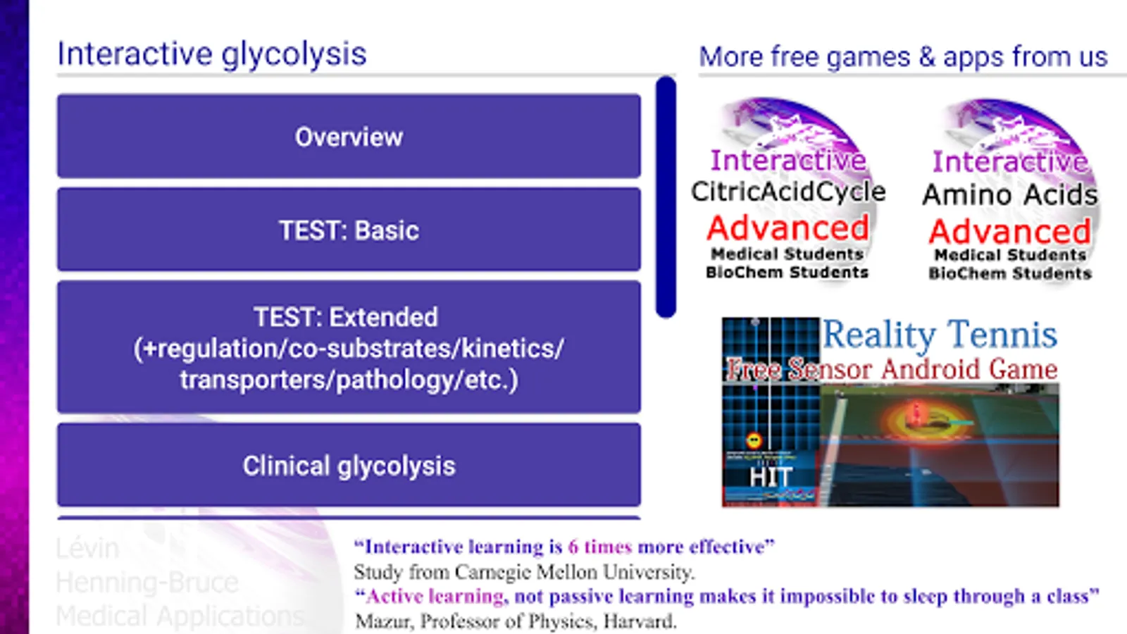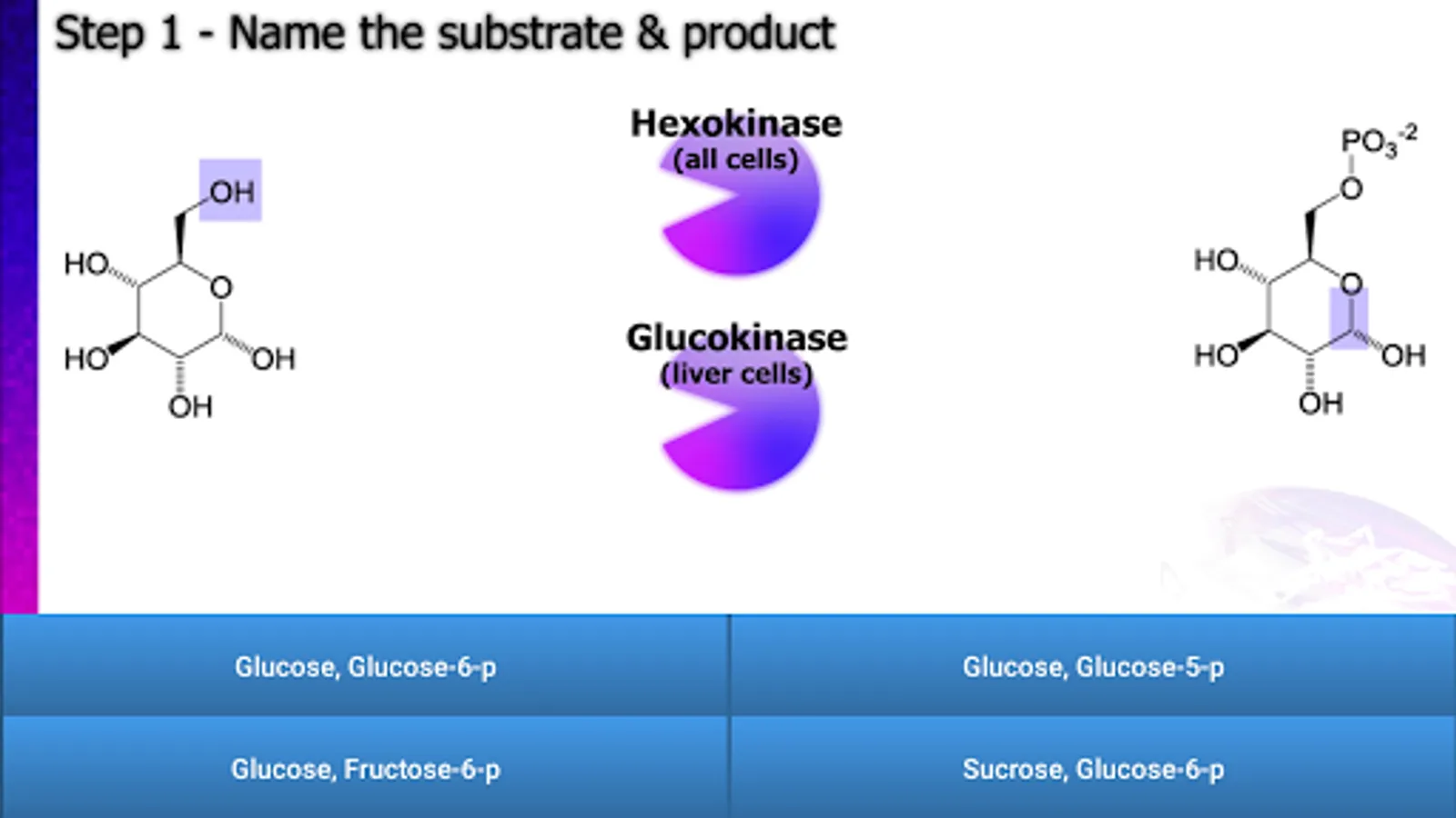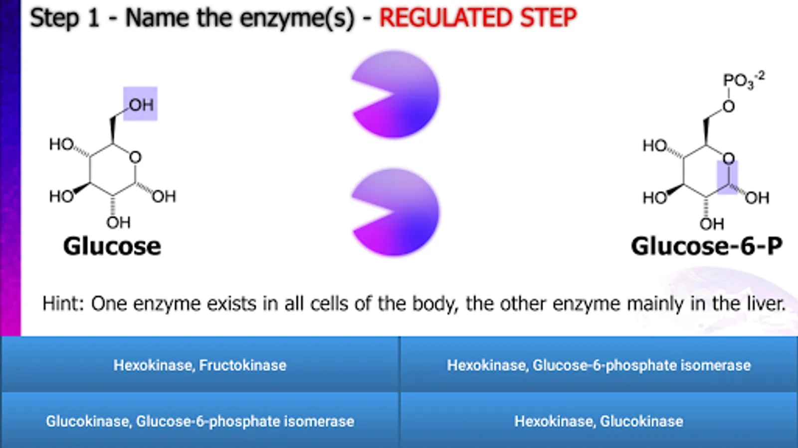 Our app includes all the substrates, enzymes and co-substrates tests in glycolysis.