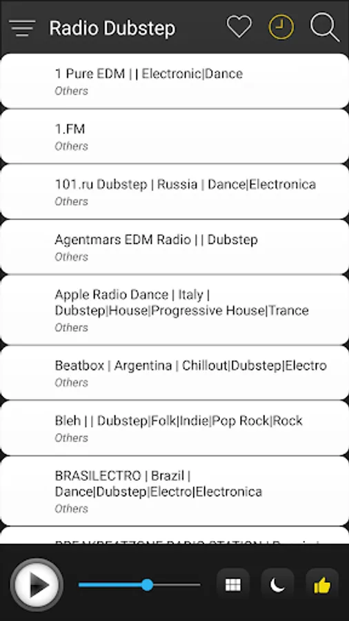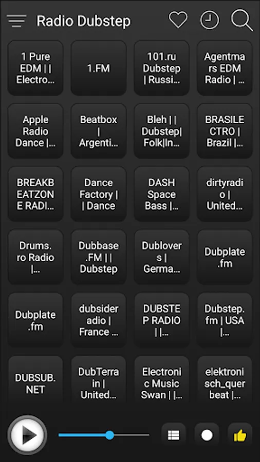 Dubstep Radio (Dubstep Music / Songs) includes the most popular Dubstep radio stations all together for faster, easier listening and for free. You can quickly enjoy your favourite Dubstep radios by various categories in one click, instant playback and premium quality.