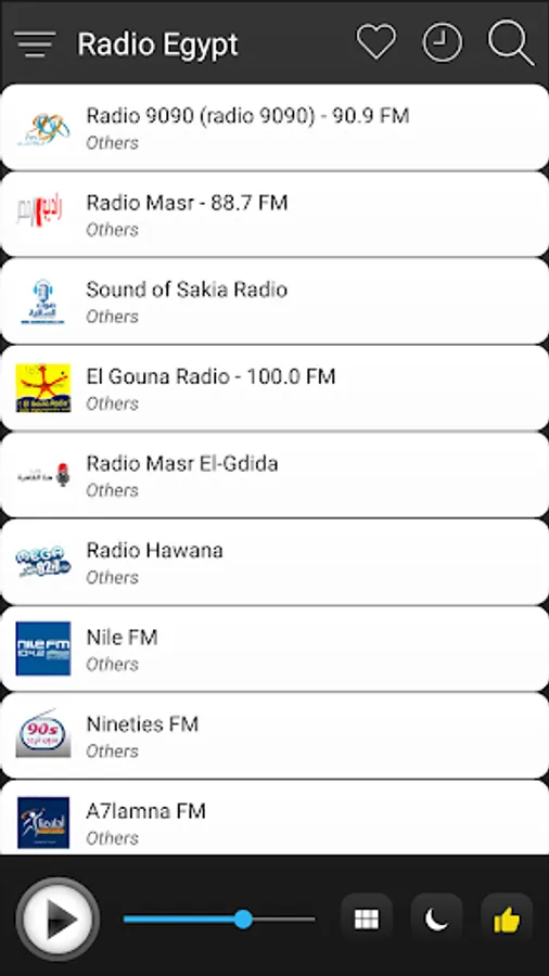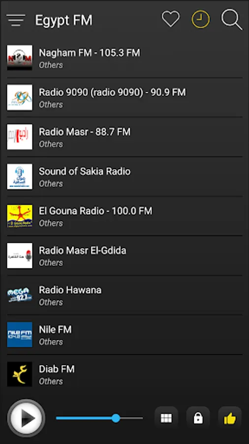 Egypt Radio (راديو مصر) includes the most popular Egypt radio stations all together for faster, easier listening and for free. You can quickly enjoy your favourite Egypt radios by various categories in one click, instant playback and premium quality.