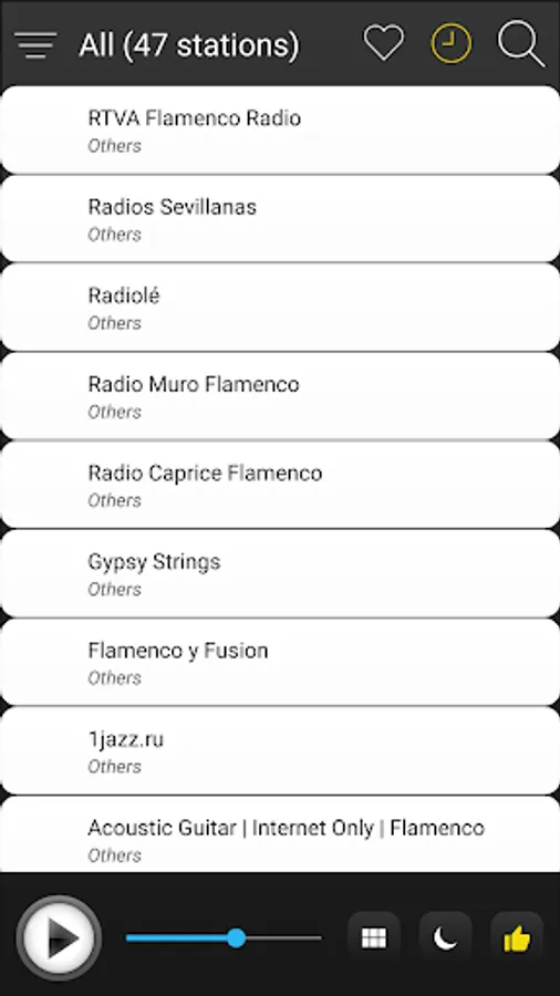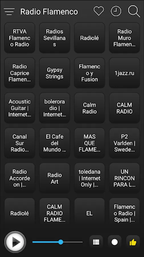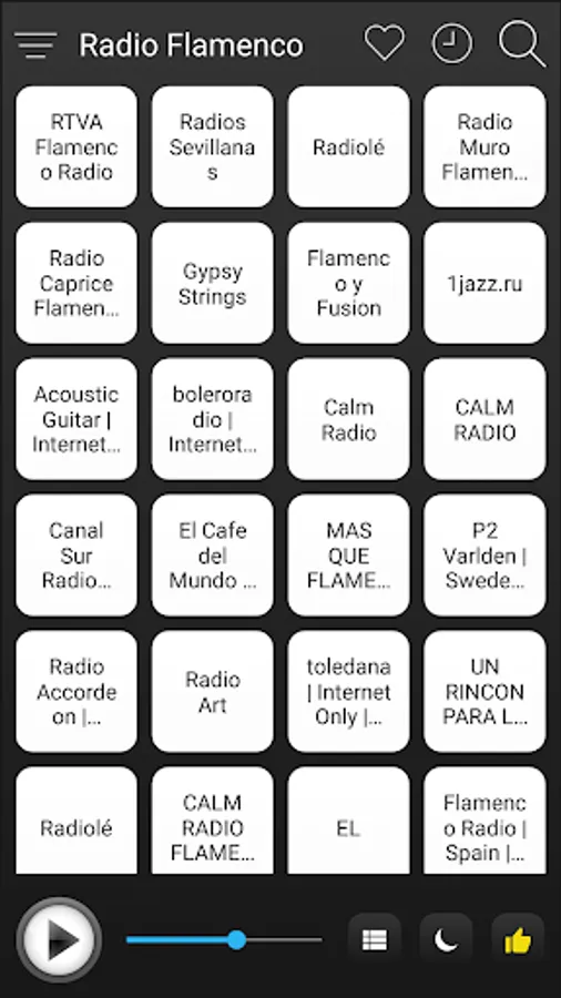 Flamenco Radio (Flamenco Music / Songs) includes the most popular Flamenco radio stations all together for faster, easier listening and for free. You can quickly enjoy your favourite Flamenco radios by various categories in one click, instant playback and premium quality.