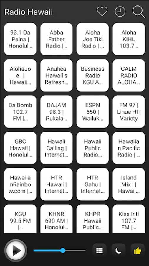 Hawaii Radio includes the most popular Hawaii radio stations all together for faster, easier listening and for free. You can quickly enjoy your favourite Hawaii radios by various categories in one click, instant playback and premium quality.