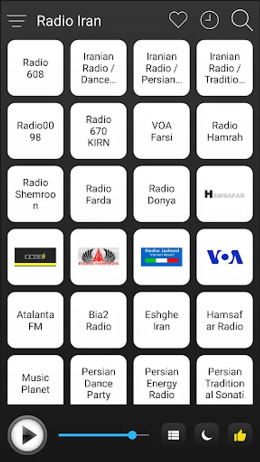 Iran Radio (ایران صدا - پخش زنده رادیو) includes the most popular Iran radio stations all together for faster, easier listening and for free. You can quickly enjoy your favourite Iran radios by various categories in one click, instant playback and premium quality.
