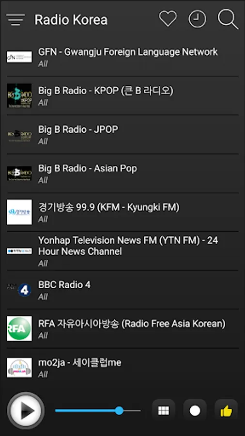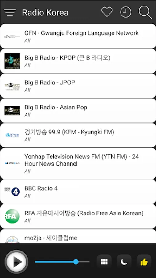 South Korea Radio (λΌλμ€ νκ΅ FM) includes the most popular South Korea radio stations all together for faster, easier listening and for free. You can quickly enjoy your favourite South Korea radios by various categories in one click, instant playback and premium quality.