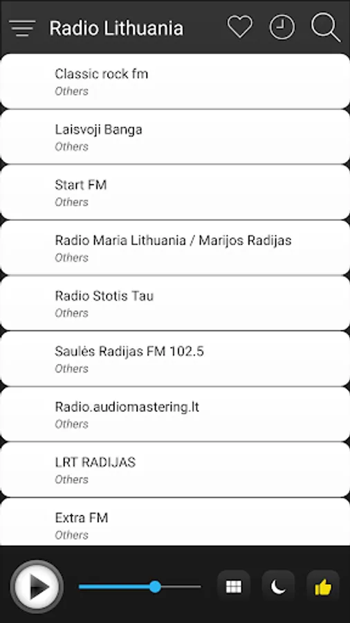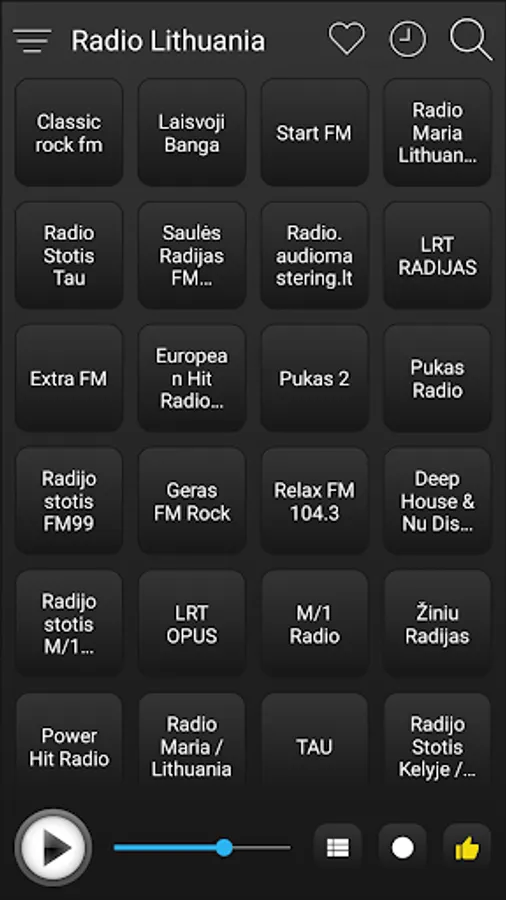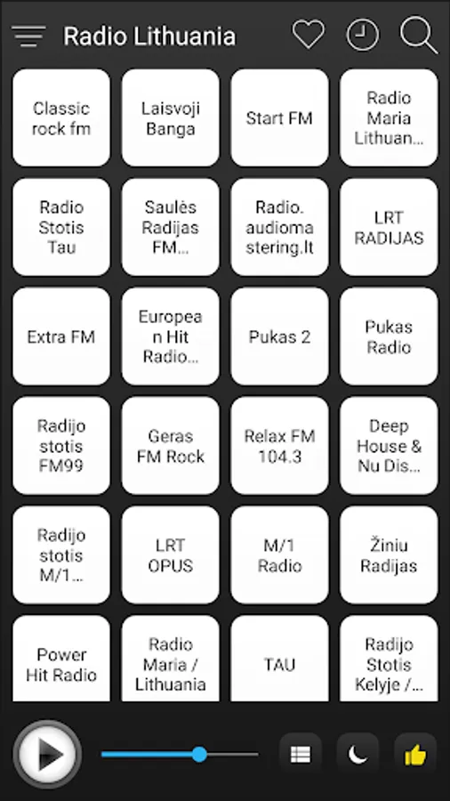 Lithuania Radio includes the most popular Lithuania radio stations all together for faster, easier listening and for free. You can quickly enjoy your favourite Lithuania radios by various categories in one click, instant playback and premium quality.