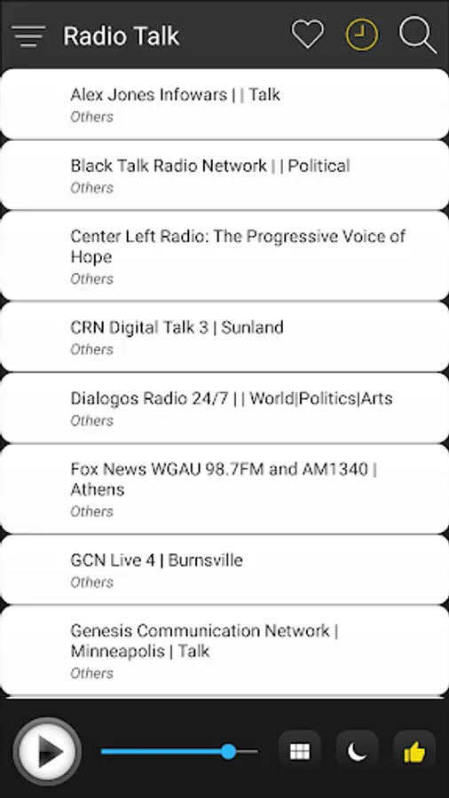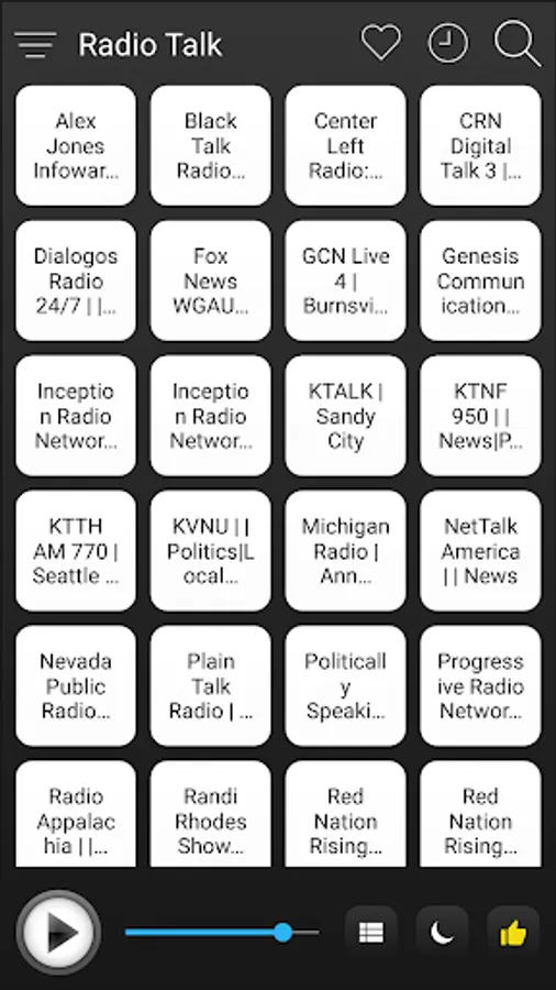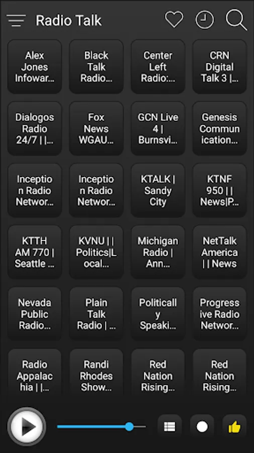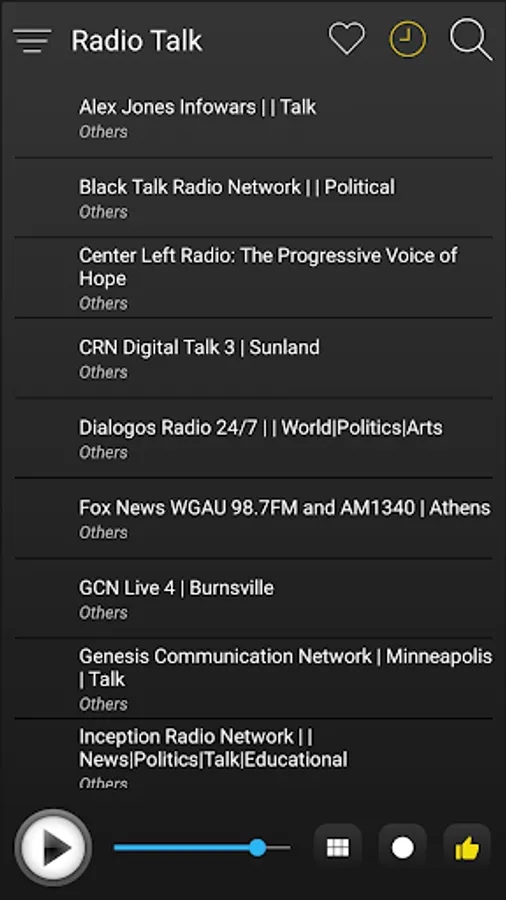 Talk Radio includes the most popular Talk radio stations all together for faster, easier listening and for free. You can quickly enjoy your favourite Talk radios by various categories in one click, instant playback and premium quality.