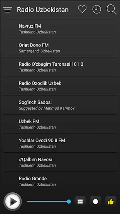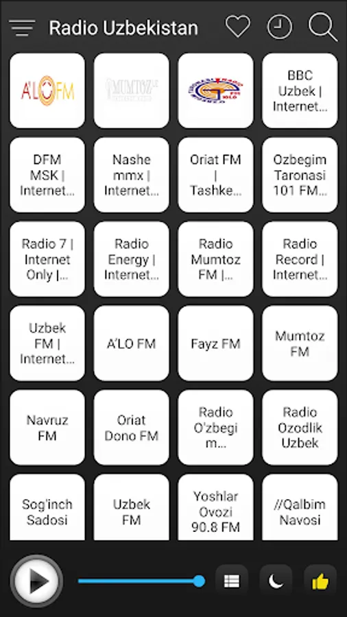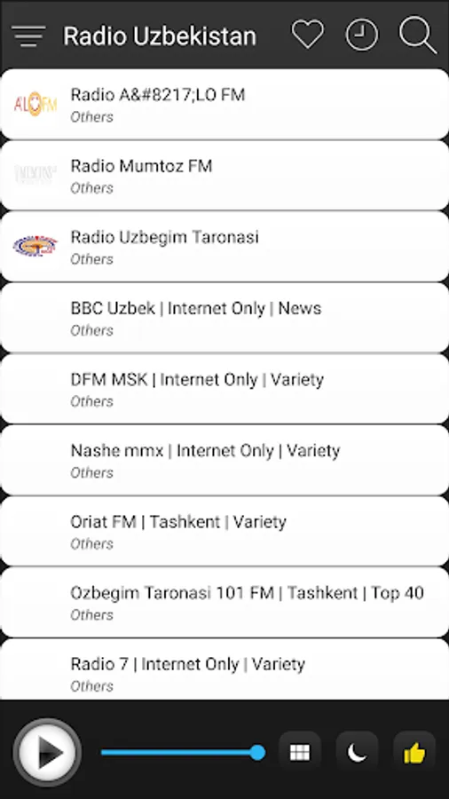 Uzbekistan Radio includes the most popular Uzbekistan radio stations all together for faster, easier listening and for free. You can quickly enjoy your favourite Uzbekistan radios by various categories in one click, instant playback and premium quality.