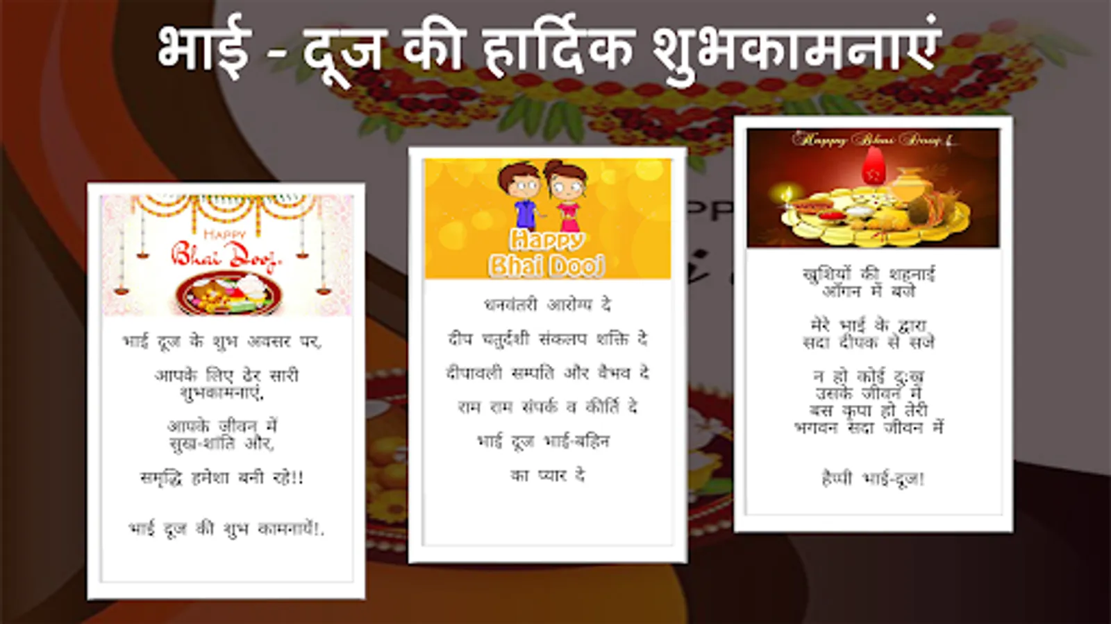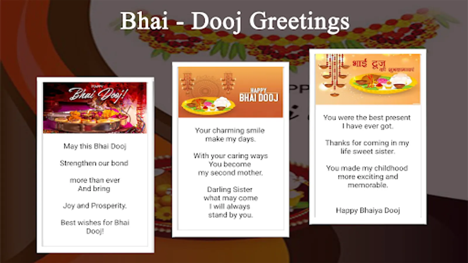 By using our app, you can make the best Bhai Dooj greetings online. Greeting cards make people happy in any part of the world.