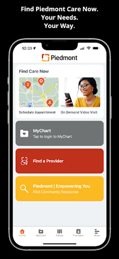 The Piedmont Now app provides instant support to navigate the entire Piedmont experience. From finding Piedmont providers and scheduling your appointments, to guided indoor hospital navigation, the Piedmont Now app makes your healthcare experience easier than ever. Key features include: