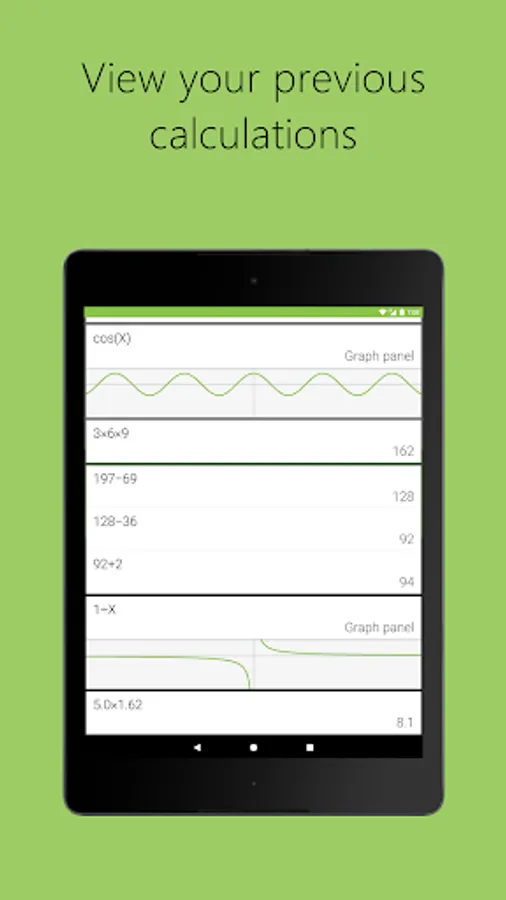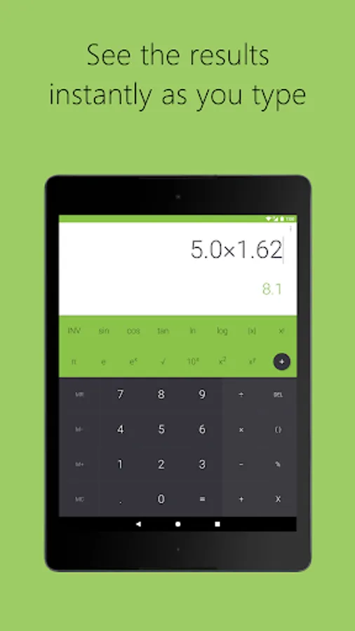 • To use advanced operators and functions, swipe to the left the colored bar on the right side or hold your device sideways