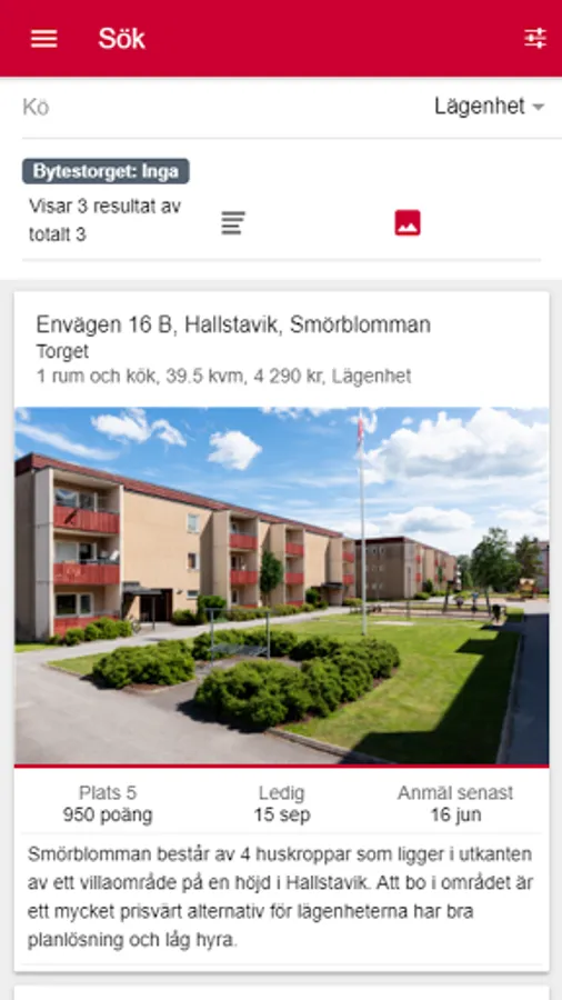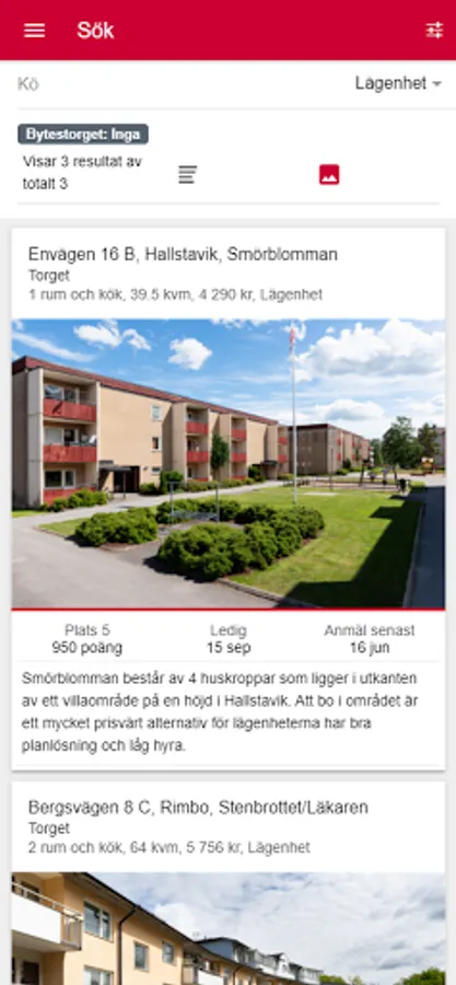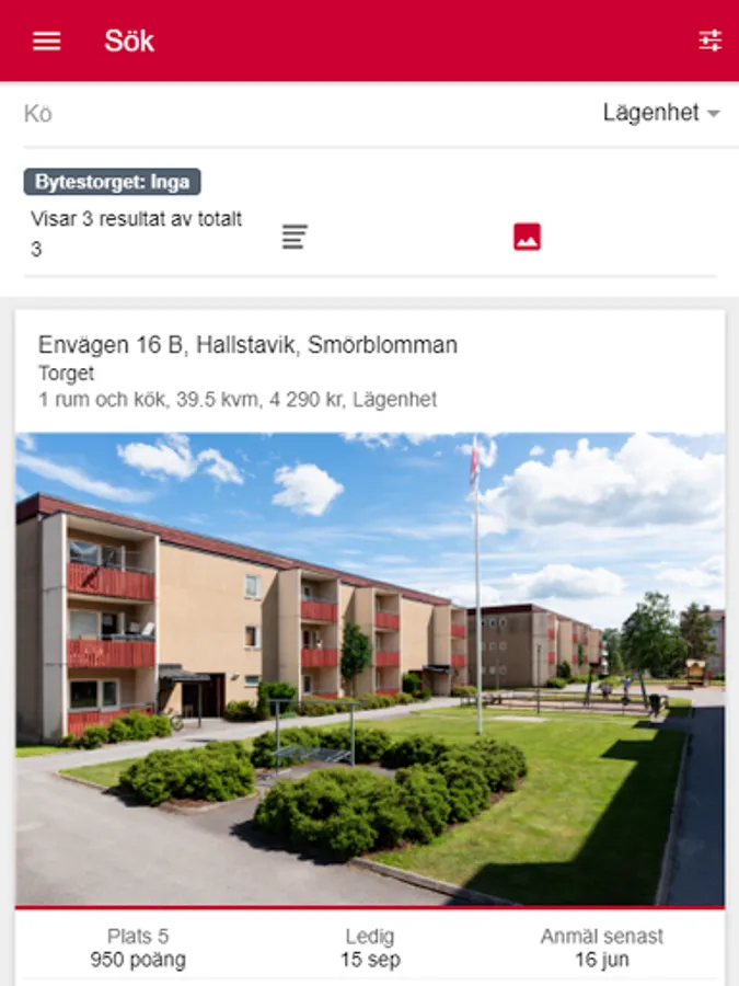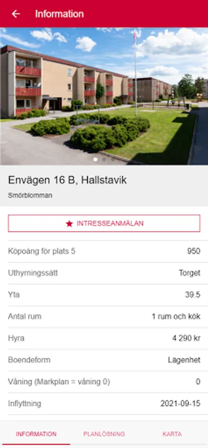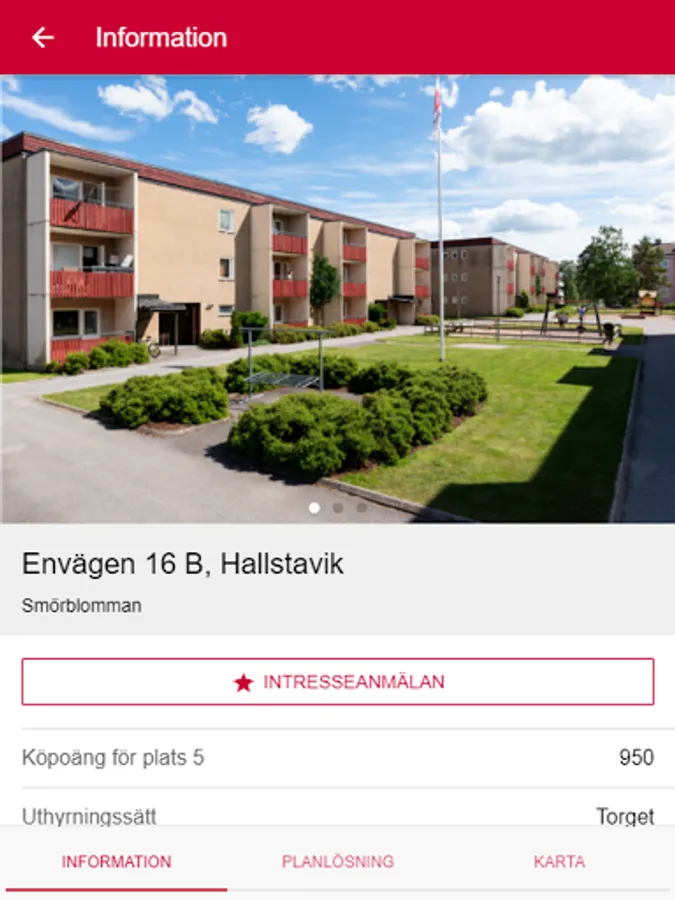 In the app you can see pictures and floor plans and get information about our vacancies, make interest notifications, reply to offers etc. To be able to register interest notifications and respond to offers, you need to register as a housing search on our website, www.roslagsbostader.se.
