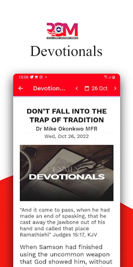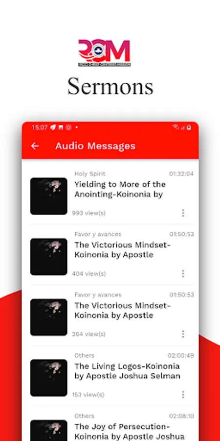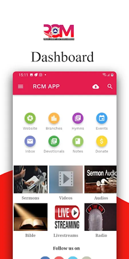 You can watch videos, listen to audio messages and watch live streams of our services.Start your journey to a never-ending worship experience with the RCM Mobile APP.