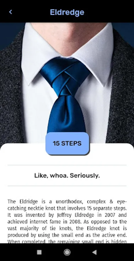 Easy and clear: follow the simple, clear, step-by-step instructions on the screen, and you can easily and smoothly tie a tie. In the application there are many ways to tie ties, both classic and famous, as well as ultramodern and rare.