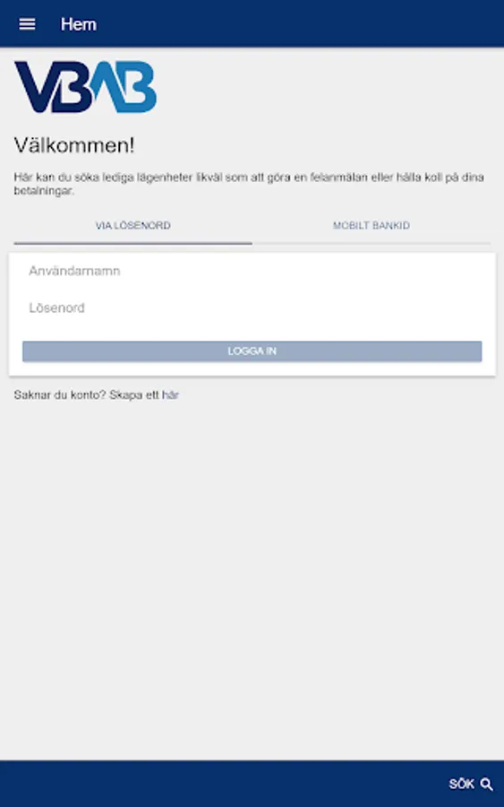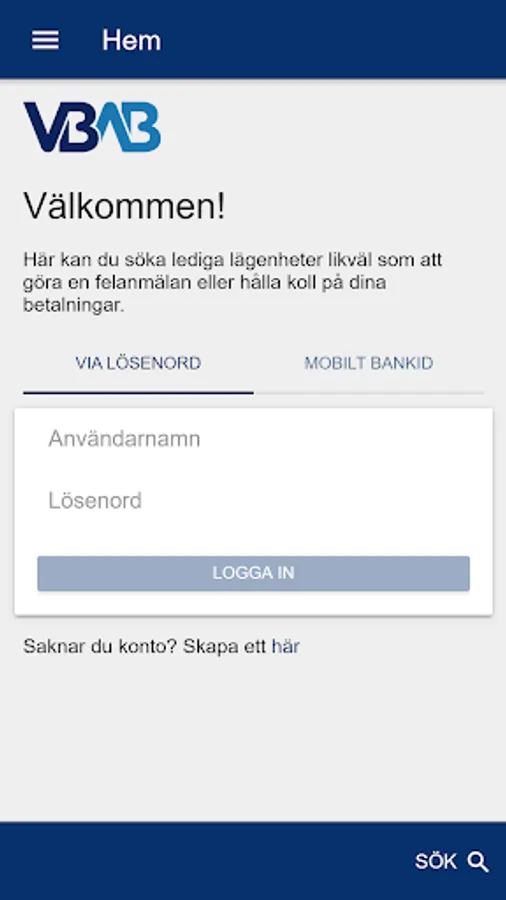 VBAB's housing app allows you to easily queue up and search among our apartments. You can also report interest, receive offers and, if applicable, sign the rental agreement with bank ID.