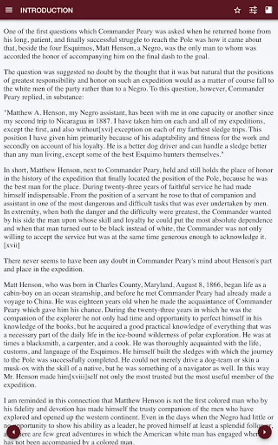 When Commander Robert Peary reached the North Pole on April 6, 1909, one other American was with him--Matthew Henson, a black man from Maryland who had been Peary's faithful companion through 22 years of polar exploration. This is Henson's story in his own words, from his early years as a sailor to his meeting Robert Peary and their multiple expeditions to the North Pole. Filled with hair-breadth escapes from disaster and haunting evocations of life in the Arctic, this classic of exploration literature reveals Henson as the true hero of the journey, one who had been forced to accept a lower status because of his race. It was Henson who learned to speak the native tongue of the Eskimos, Henson who handled the dogs and broke the trail, and Henson who arrived first at the North Pole after being purposely left behind by Peary. New to this edition are rare articles and photos of the expedition that Henson published to set the record straight.