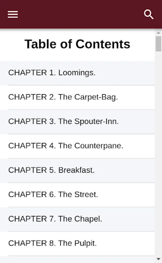 On a schooner to Nantucket, Ishmael and Queequeg come across a local bumpkin who mocks Queequeg. However, when this bumpkin is swept overboard, Queequeg saves him. In Nantucket, Queequeg and Ishmael choose between three ships for a year journey, and decide upon the Pequod. The Captain of the Pequod, Peleg, is now retired, and merely owns the boat with another Quaker, Bildad. Peleg tells them of the new captain, Ahab, and immediately describes him as a grand and ungodly man. Before leaving for their voyage, Ishmael and Queequeg come across a stranger named Elijah who predicts disaster on their journey. Before leaving on the Pequod, Elijah again predicts disaster.
