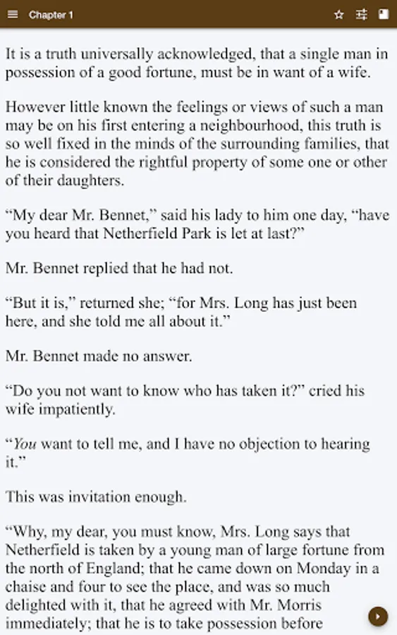 “My dear Mr. Bennet,” said his lady to him one day, “have you heard that Netherfield Park is let at last?”
