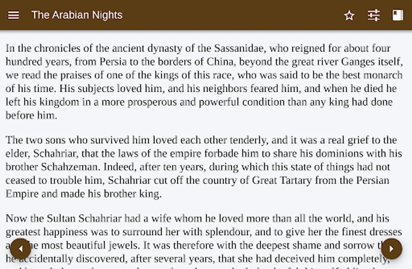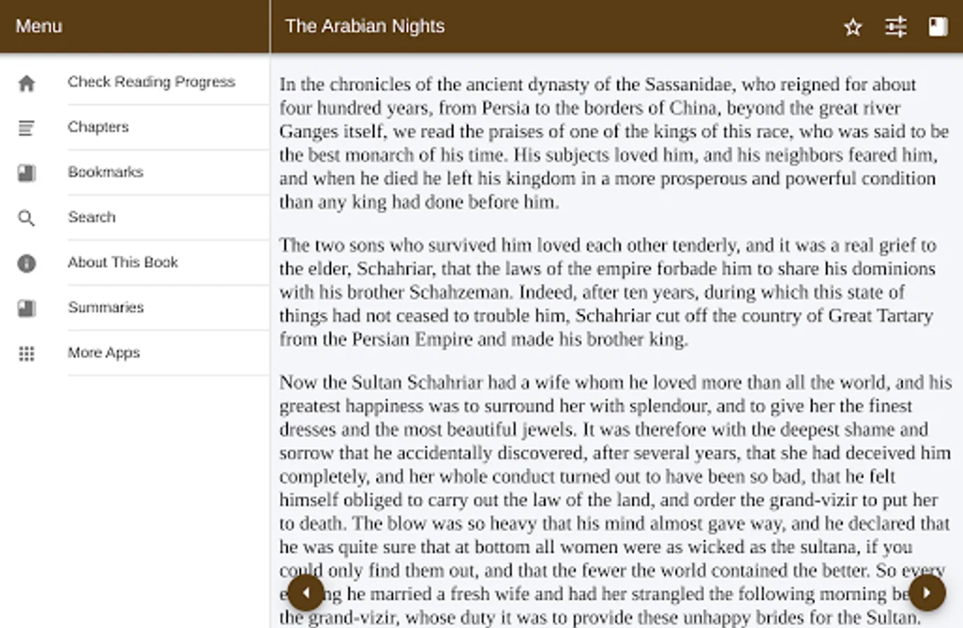 The Arabian Nights’ Entertainments (also known as A Thousand and One Nights) is a medieval collection of Middle Eastern folktales about heroic figures such as Aladdin, Ali Baba, and Sinbad whose luck and ingenuity carry them through perilous adventures. First collected in the fifteenth century, the stories found their way into Western culture in the early eighteenth century when they were translated into French. The first English edition followed a century later. Since then they have been retranslated and rewritten for both children and adults many times.