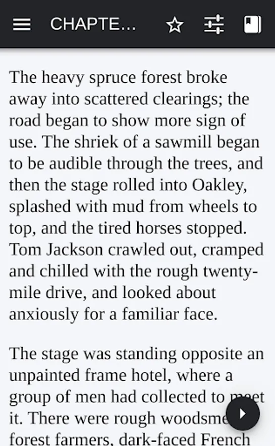 The heavy spruce forest broke away into scattered clearings; the road began to show more sign of use. The shriek of a sawmill began to be audible through the trees, and then the stage rolled into Oakley, splashed with mud from wheels to top, and the tired horses stopped. Tom Jackson crawled out, cramped and chilled with the rough twenty-mile drive, and looked about anxiously for a familiar face.