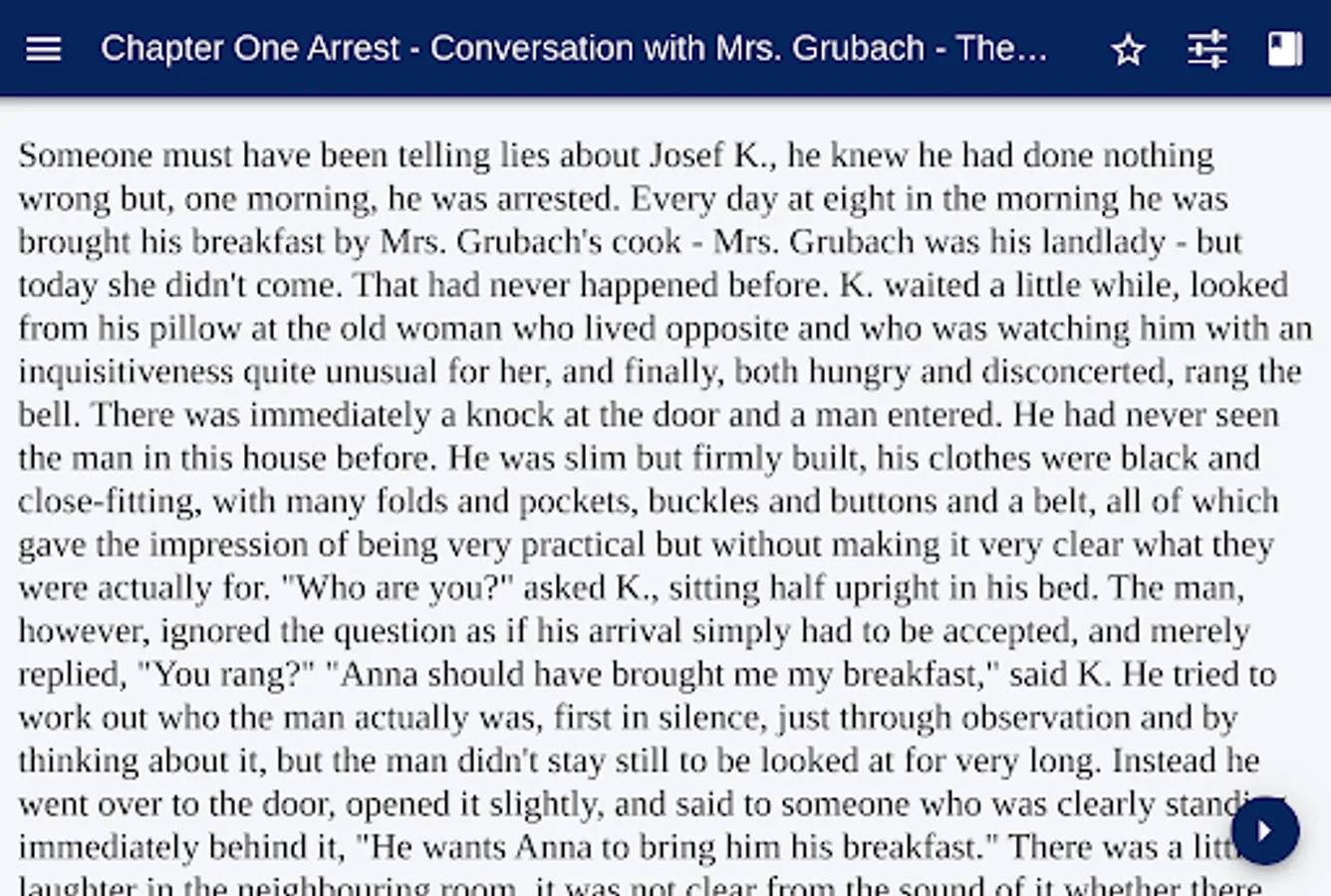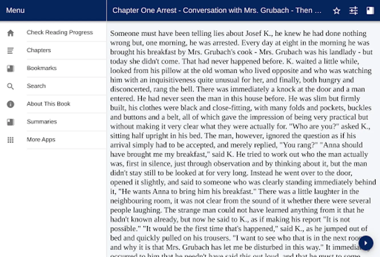 The Trial is the chronicle of that intervening year of K.'s case, his struggles and encounters with the invisible Law and the untouchable Court. It is an account, ultimately, of state-induced self-destruction. Yet, as in all of Kafka's best writing, the "meaning" is far from clear. Just as the parable related by the chaplain in Chapter Nine (called "The Doorkeeper" or "Before the Law") elicits endless commentary from students of the Law, so has The Trial been a touchstone of twentieth-century critical interpretation. As some commentators have noted, it has, in parts, the quality of revealed truth; as such it is ultimately unresolvable--a mirror for any sectarian reading.