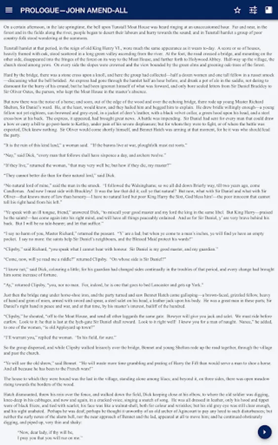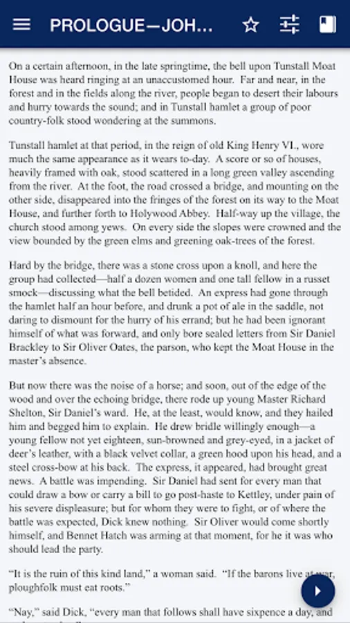 The Black Arrow tells the story of Richard (Dick) Shelton during the Wars of the Roses: how he becomes a knight, rescues his lady Joanna Sedley, and obtains justice for the murder of his father, Sir Harry Shelton. Outlaws in Tunstall Forest organised by Ellis Duckworth, whose weapon and calling card is a black arrow, cause Dick to suspect that his guardian Sir Daniel Brackley and his retainers are responsible for his father's murder. Dick's suspicions are enough to turn Sir Daniel against him, so he has no recourse but to escape from Sir Daniel and join the outlaws of the Black Arrow against him. This struggle sweeps him up into the greater conflict surrounding them all.