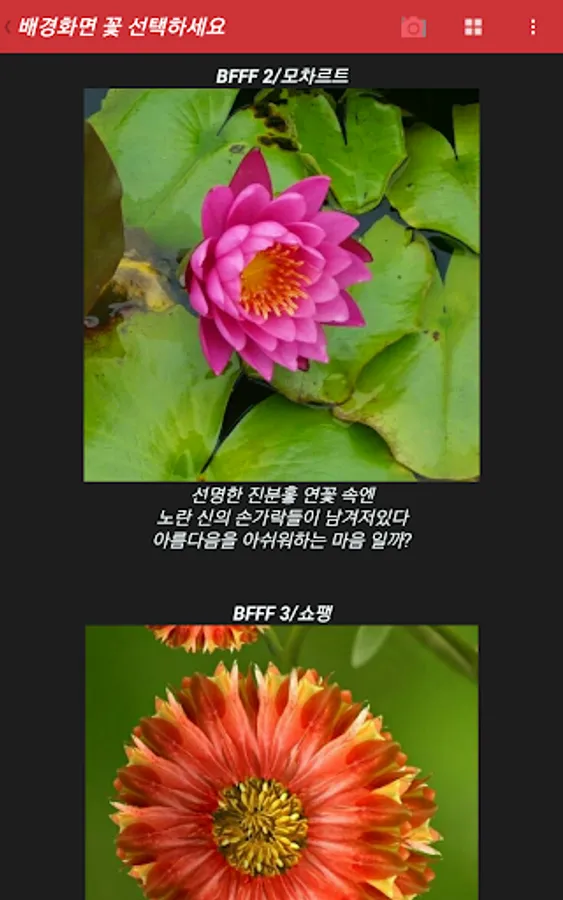 You might be able to enjoy Haiku style poems for each flower, live in the spirit of
